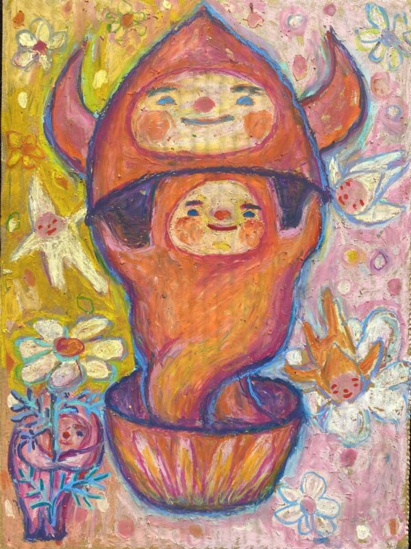 「ハナワラウ」(18x24cm oil pastel )