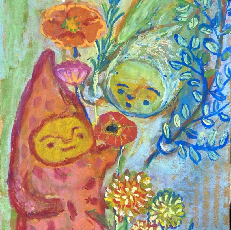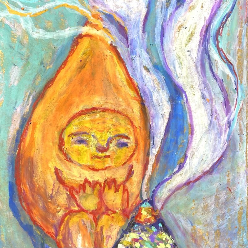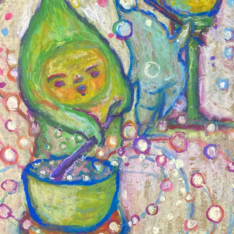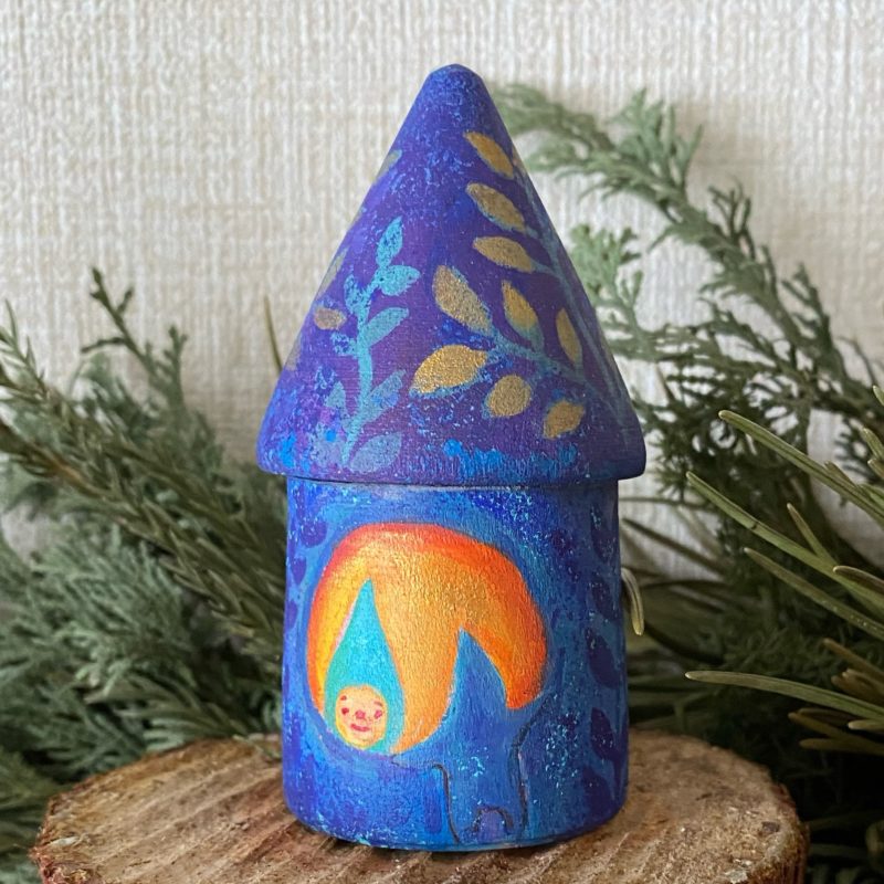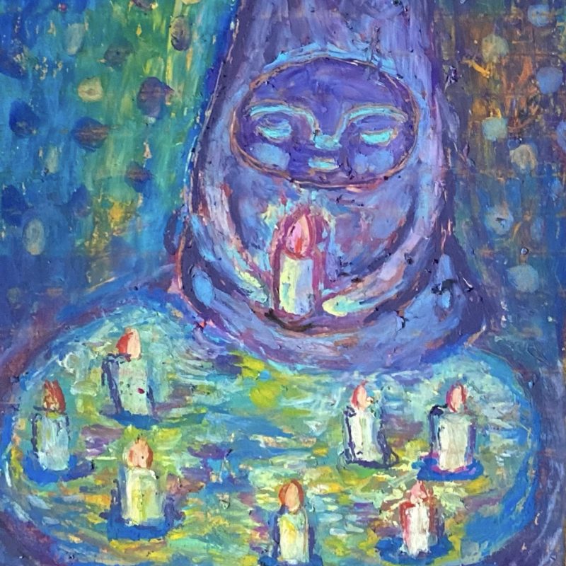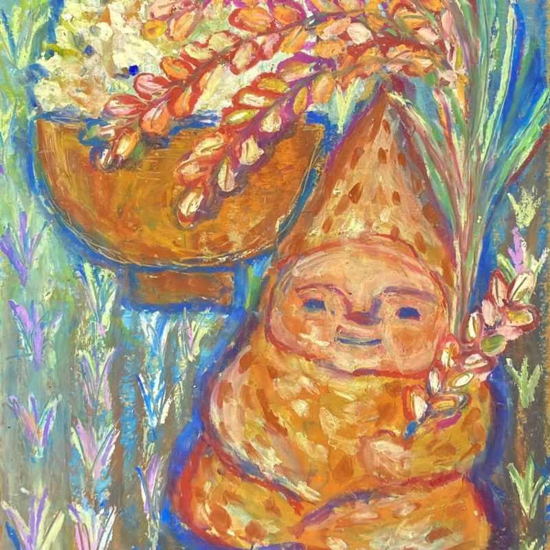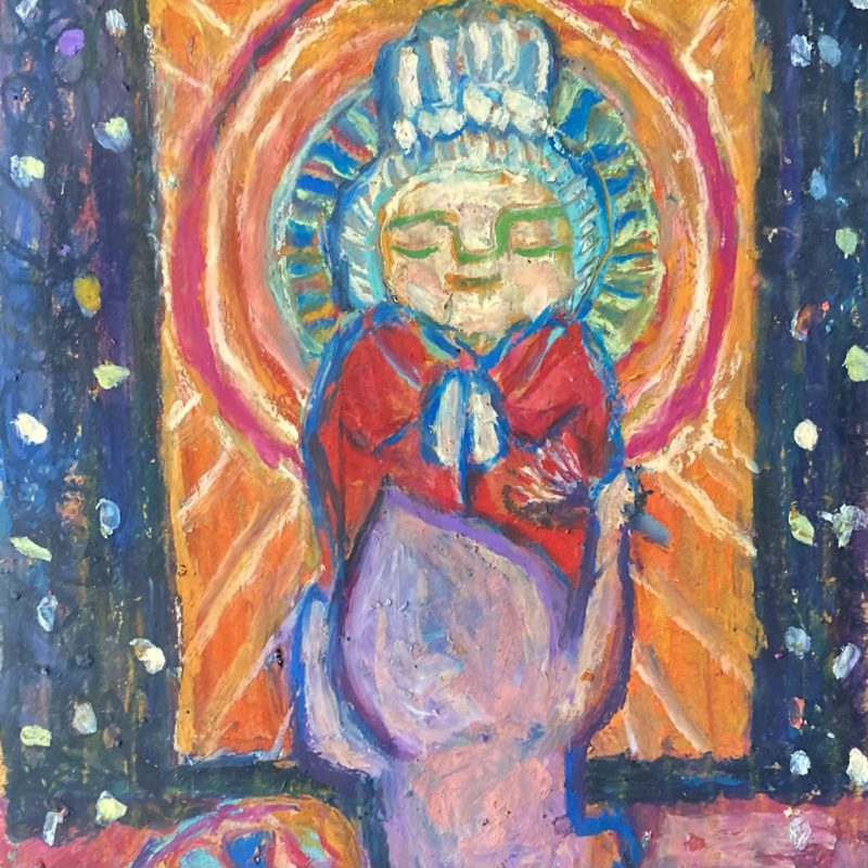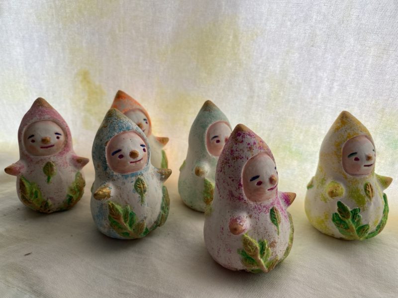 オソナエサンは祈りや、あちらの世界にいる大切な人に贈り物を送りたいとき、小さな存在が届けてくれてくれるように。そんな気持ちでお盆に描き始めたのが最初でした。